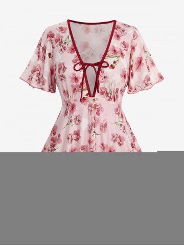 Tankinis > Maillot de bain tankini 3 pièces imprimé fleurs de pêcher ombré, décolleté plongeant et nœud papillon.