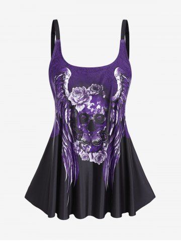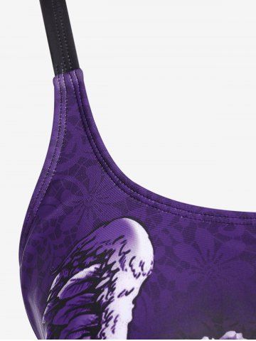 Tankinis > Maillot de Bain Tankini Aile de Rose Crâne Imprimés de Grande Taille à Lacets