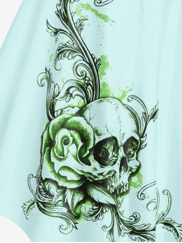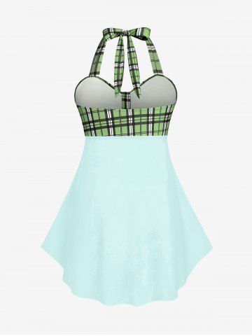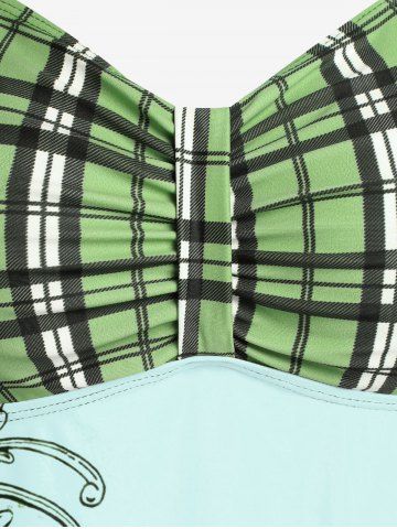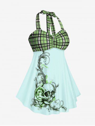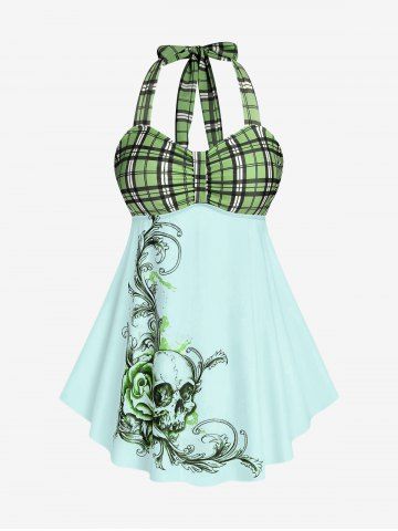 Maillot de bain tankini dos nu à carreaux et imprimé tête de mort, style gothique, grandes tailles et courbes. - Bleu Verdâtre - 4x