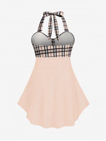 Maillot de bain tankini dos nu à carreaux et imprimé tête de mort, style gothique, grandes tailles et courbes. - Orange Clair - 1x