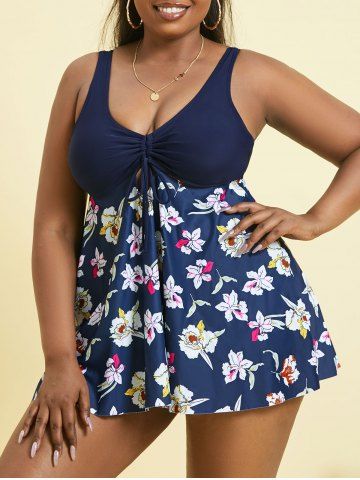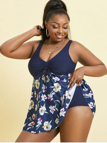 Tankinis > Ensemble de Robe de Bain Modeste à Imprimé Fleur de Grande Taille avec Trou de Serrure