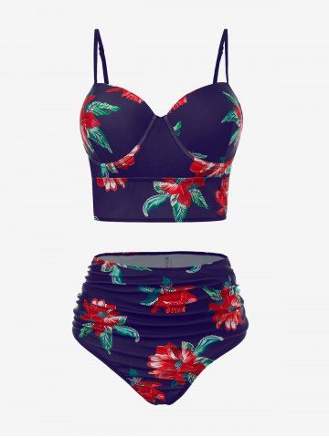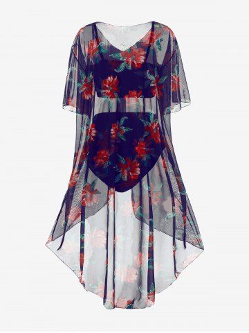 Tankinis > Maillot de bain tankini fleuri à armatures grande taille avec paréo assorti