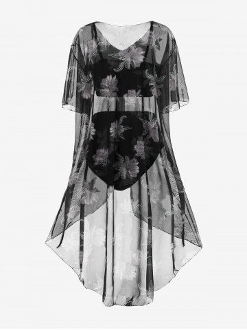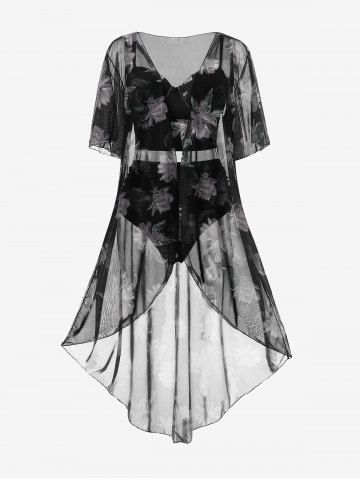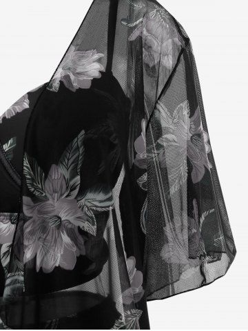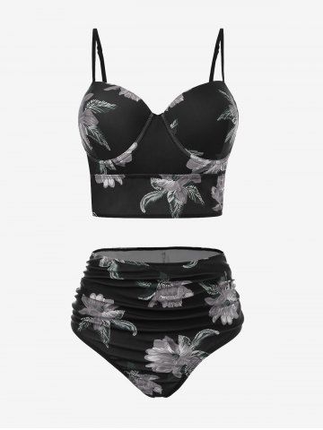 Maillot de bain tankini fleuri à armatures grande taille avec paréo assorti - Gris Foncé - Gris Foncé
