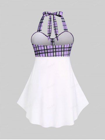 Tankinis > Maillot de Bain Tankini Gothique Courbe à Carreaux à Imprimé Crâne sans Dos de Grande Taille à Col Halter
