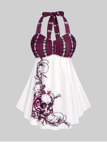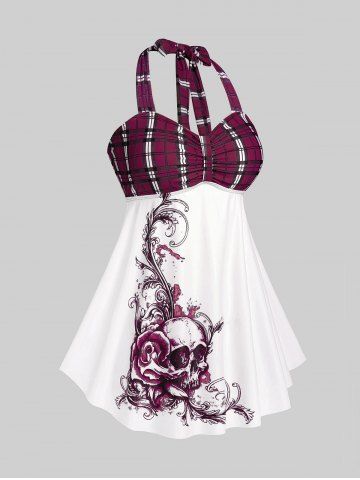 Tankinis > Maillot de bain tankini gothique modeste dos nu à imprimé tête de mort et à carreaux grande taille et courbe