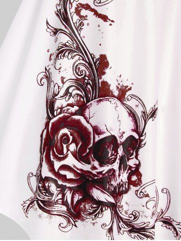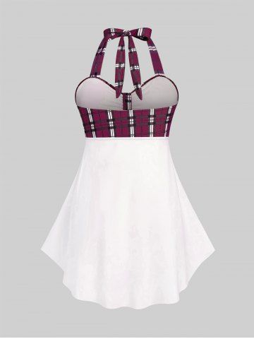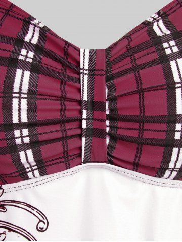 Maillot de bain tankini gothique modeste dos nu à imprimé tête de mort et à carreaux grande taille et courbe - Rouge Foncé - 1x