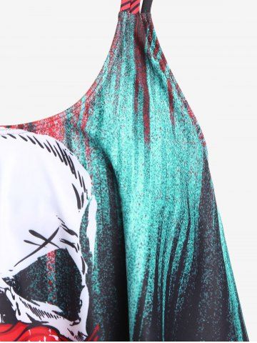 Maillot de Bain Tankini Gothique Superposé Crâne à Bretelle à Volants de Grande Taille - Multi-a - 3x