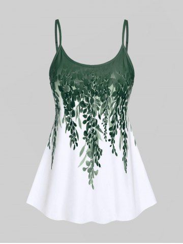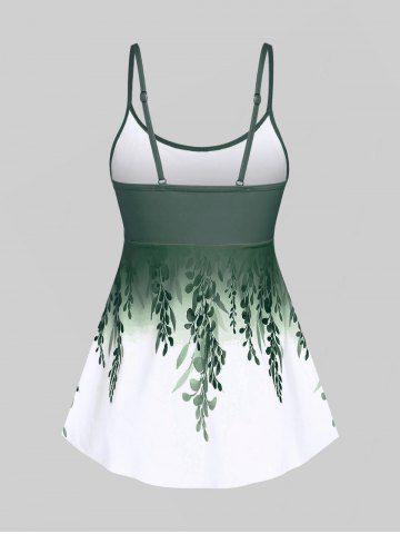 Maillot de bain tankini grande taille à imprimé floral ombré et jambes courtes (bretelles réglables) - Vert Profond - 1x | Us 14-16