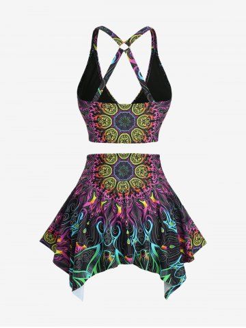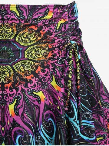 Maillot de bain tankini grande taille à imprimé floral rétro, bretelles croisées et jupe froncée - Multi-a - 3x | Us 22-24