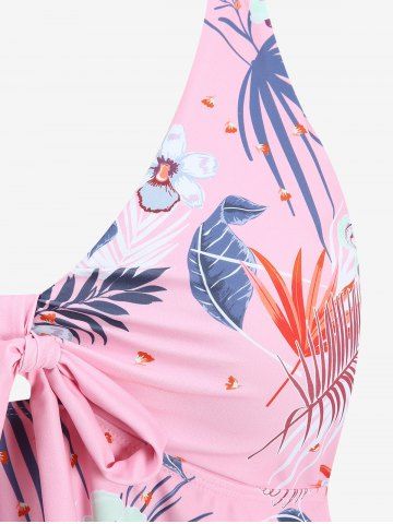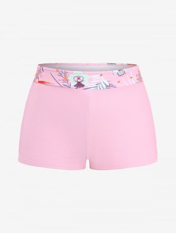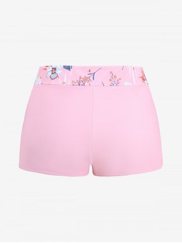 Maillot de bain tankini grande taille à imprimé floral tropical et hibiscus, style hawaïen, coupe shorty (bretelles réglables) - Rose Clair - Rose Léger