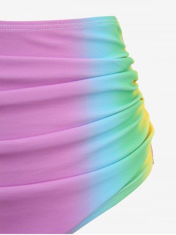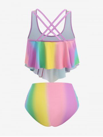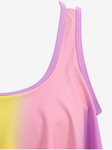 Tankinis > Maillot de bain tankini grande taille à imprimé ombré coloré, bretelles croisées, ourlet péplum froncé