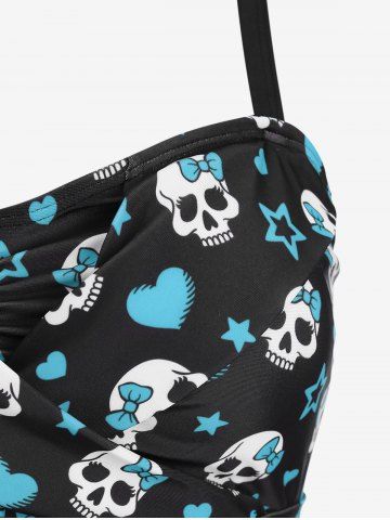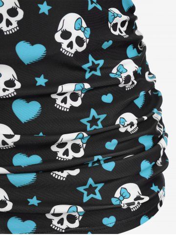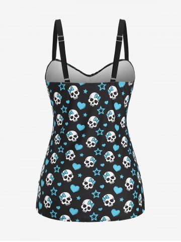 Tankinis > Maillot de bain tankini grande taille à imprimé tête de mort, nœud papillon, cœur et étoiles, coupe shorty