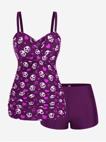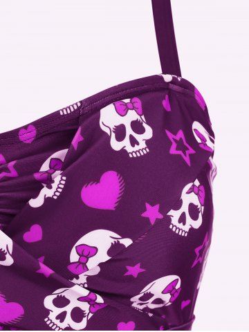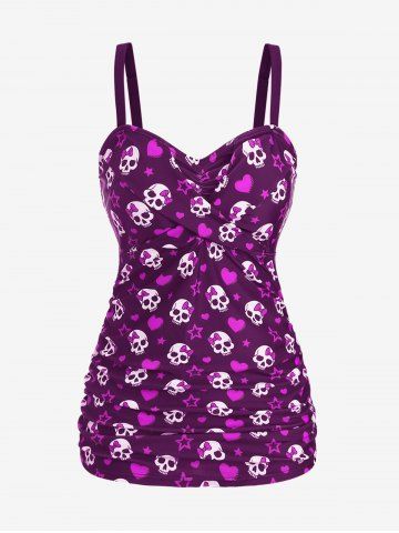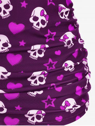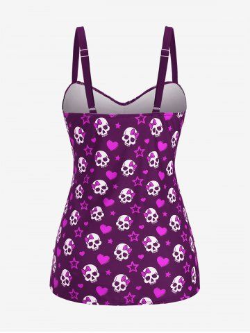 Tankinis > Maillot de bain tankini grande taille à imprimé tête de mort, nœud papillon, cœur et étoiles