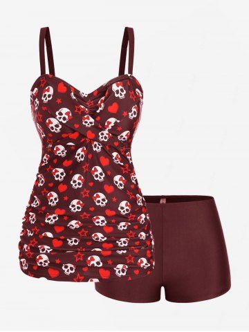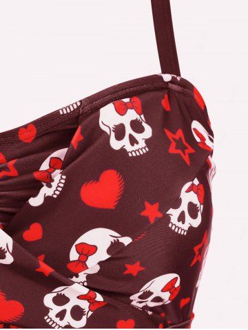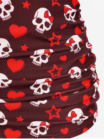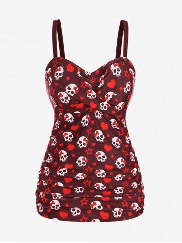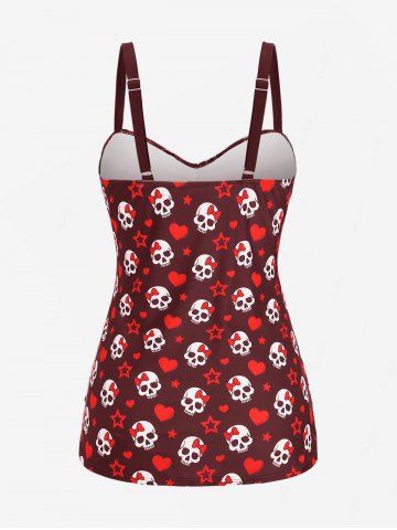 Maillot de bain tankini grande taille à imprimé tête de mort, nœud papillon, cœur et étoiles - Rouge Foncé - 3x | Us 22-24