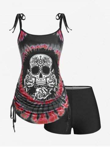 j*****35Plus Size Skull Rose Tie Dye Print Cinched Ruched Tie Boyshorts Tankini SwimsuitColor: BLACK Size: 3X | US 22-24ce maillot est magnifique .la taille parfaite.jai pris la même grandeur de maillot que celui-là que j'ai.binne qualité.