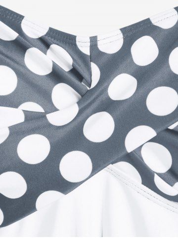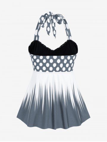Maillot de bain tankini grande taille à pois, dos nu, bustier torsadé et froncé - Gris - Gris