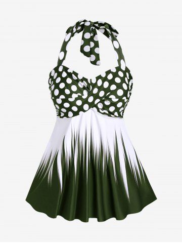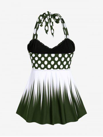 Maillot de bain tankini grande taille à pois, dos nu, bustier torsadé et froncé - Vert Profond - 2x | Us 18-20