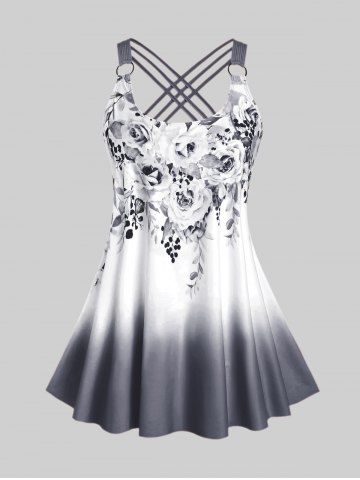 Plus Size & Curve Ombre Color Floral Print Crisscross Modest Tankini Swimsuit