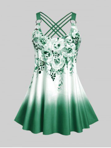Plus Size & Curve Ombre Color Floral Print Crisscross Modest Tankini Swimsuit