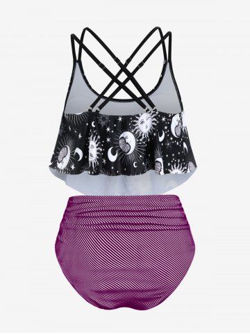 Tankinis > Maillot de bain tankini grande taille rembourré à rayures imprimées soleil, lune et galaxie