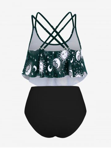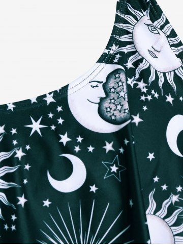 Maillot de bain tankini grande taille rembourré à rayures imprimées soleil, lune et galaxie - Vert Profond - L