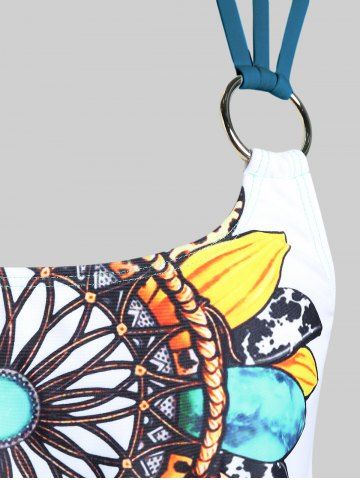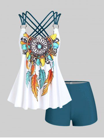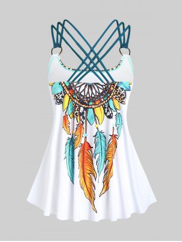 Tankinis > Maillot de Bain Tankini Plume Imprimée à Bretelle Croisée Au Dos de Grande Taille