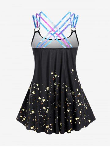 Maillot de Bain Tankini Rembourré à Imprimé Lèvres de Grande Taille - Noir - Noir