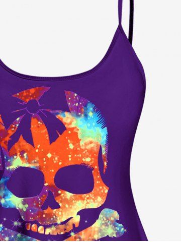 Tankinis > Maillot de bain tankini shorty grande taille à imprimé tête de mort pailletée (bretelles réglables)