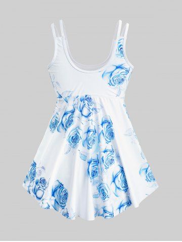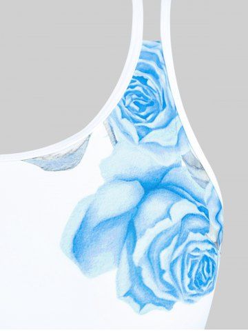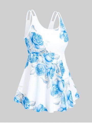 Maillot de bain tankini taille haute imprimé roses, grande taille et coupe couvrante. - Bleu Clair - Bleu Clair