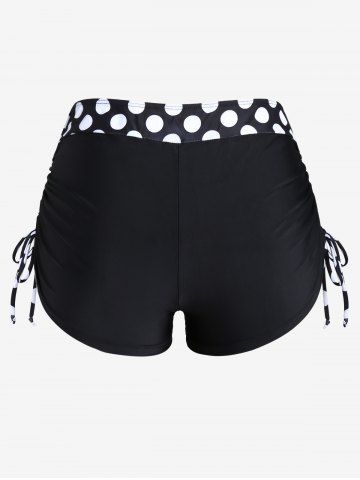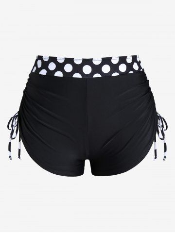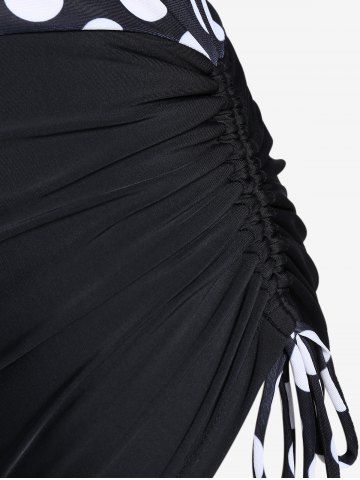 Maillot de Bain Tankini Torsadé Plissé à Pois à Col Halter de Grande Taille - Noir - Noir