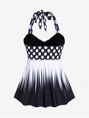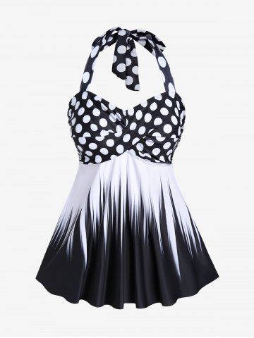 Tankinis > Maillot de Bain Tankini Torsadé Plissé à Pois à Col Halter de Grande Taille