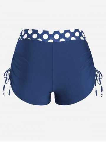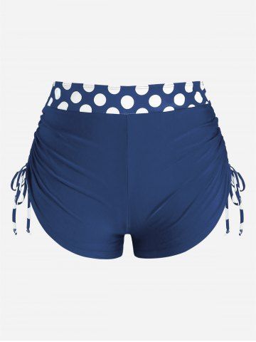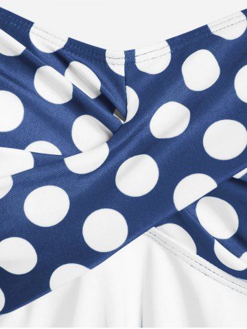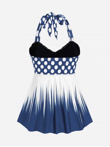 Maillot de Bain Tankini Tordu Plissé à Pois de Grande Taille à Col Halter - Bleu Profond - M | Us 10