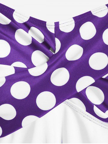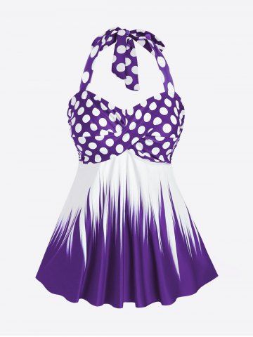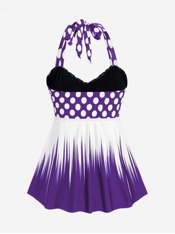 Tankinis > Maillot de Bain Tankini Tordu Plissé à Pois de Grande Taille à Col Halter