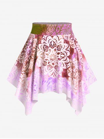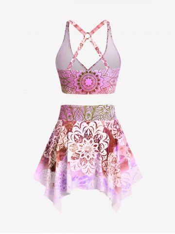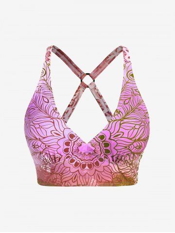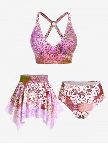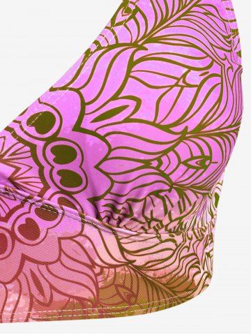 Tankinis > Maillot de bain tankini trois pièces grande taille à imprimé ethnique ombré, rembourré et à anneaux en O.