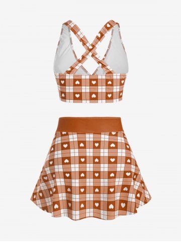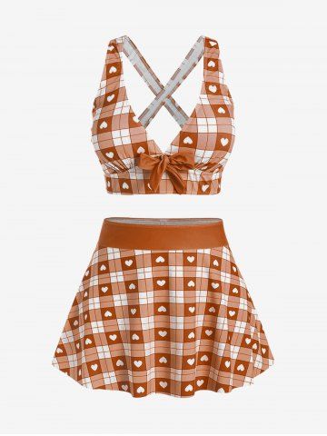 Maillot de bain tankini trois pièces rembourré avec nœud papillon en forme de cœur et bretelles croisées, grandes tailles, pour la Saint-Valentin - Orange Foncé - M | Us 10