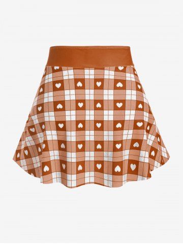 Plus Size Heart Print Colorblock Tunic Tank Top with Buttons