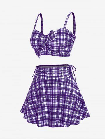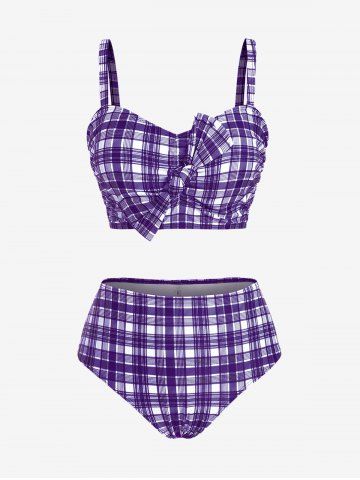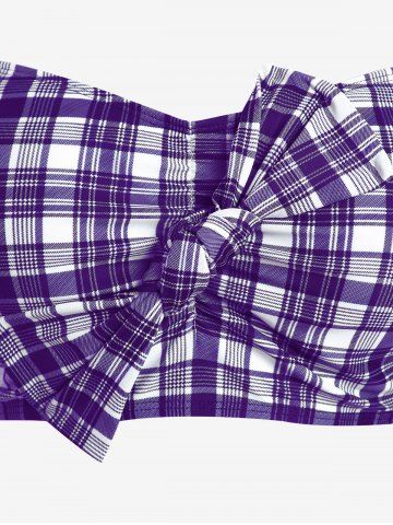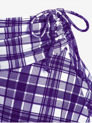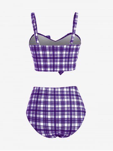 Maillot de bain trois pièces bikini long rembourré à carreaux grande taille avec nœud papillon - Concorde - L | Us 12