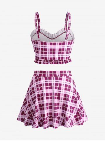 Plus Size Ruffles Flounce Padded Plaid Three Piece Skirt Tankini Swimsuit - Rouge Foncé - 4x | Us 26-28