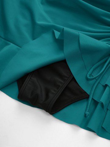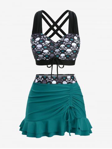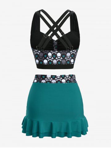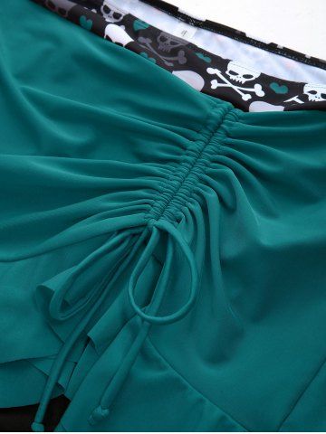Plus Size Skulls Heart Print Crisscross Cinched Ruffles Asymmetrical Skirt Tankini Swimsuit - Vert Menthe - L | Us 12