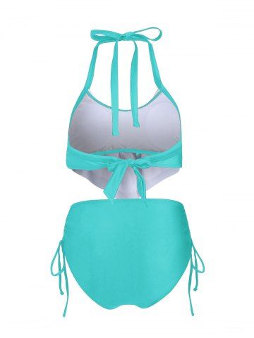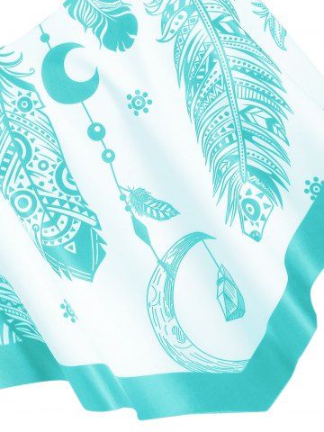 Maillot de Bain Tankini à Imprimé Plume Superposé à Volants - Turquoise Moyenne - Xl