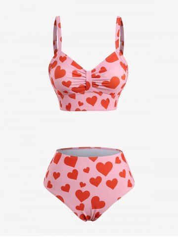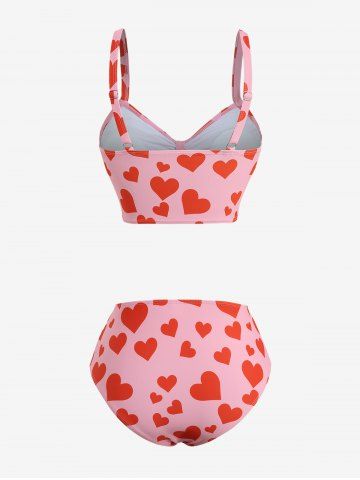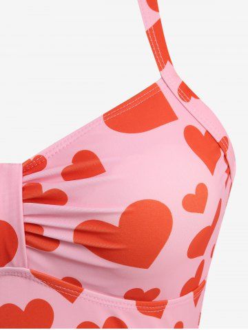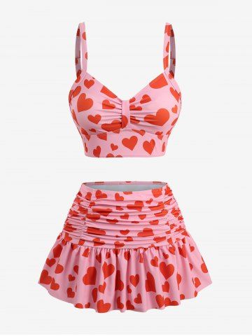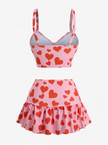 Maillot de bain tankini 3 pièces avec jupe froncée à imprimé cœur - Rose Clair - Rose Léger