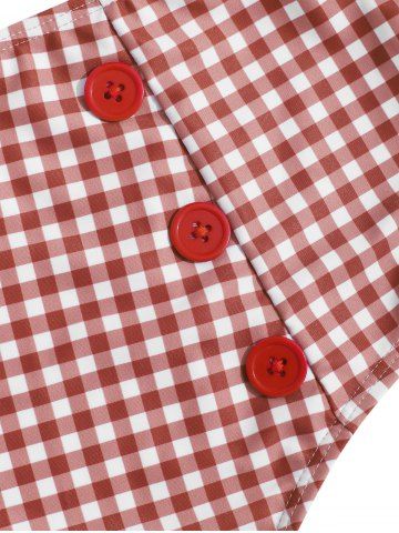 Maillot de Bain Tankini Embelli de Bouton et de Nœud Papillon en Vichy à Col Halter - Rouge - Rouge