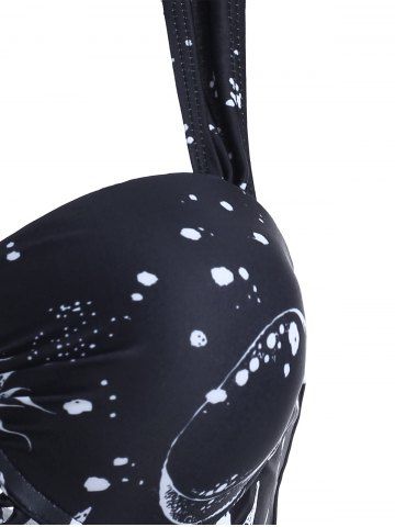 Maillot de Bain Tankini Gainant à Imprimé Léopard Lune Etoile Soleil à Lacets - Blanc - Blanc