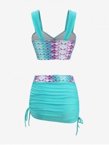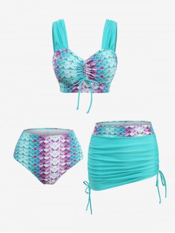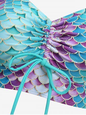 Tankinis> Mermaid Scale Print Cinched Three Piece Tankini Swimsuit