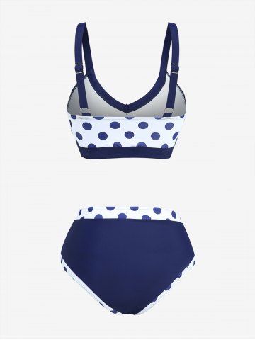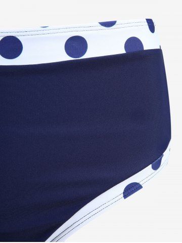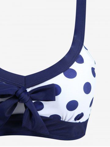 Polka Dot Print Bowknot Contrast Piping Tankini Swimsuit (Adjustable Shoulder Strap) - Bleu Ciel - Bleu Ciel