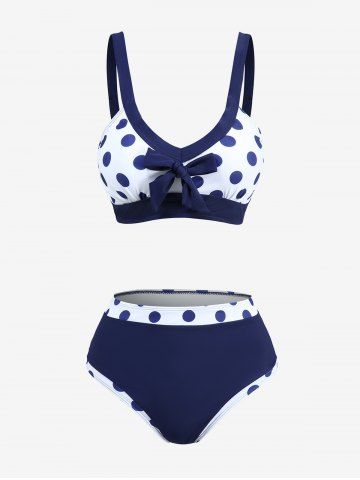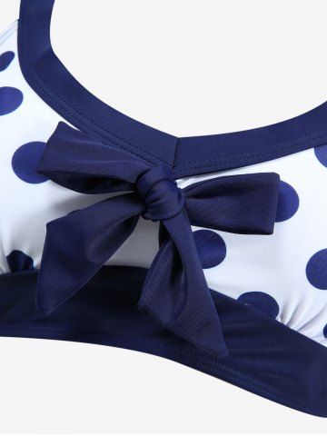 Polka Dot Print Bowknot Contrast Piping Tankini Swimsuit (Adjustable Shoulder Strap) - Bleu Ciel - Bleu Ciel