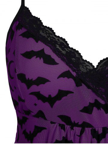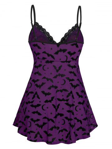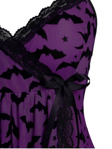 Teddies & Body > Ensemble de lingerie grande taille en maille avec bordure en dentelle et imprimé étoiles, chauve-souris et lune (bandoulière réglable)