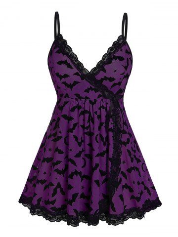 Ensemble de lingerie grande taille en maille avec bordure en dentelle et imprimé étoiles, chauve-souris et lune (bandoulière réglable) - Concorde - 2x | Us 18-20