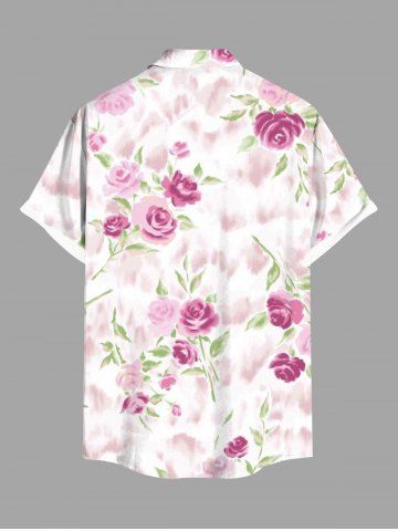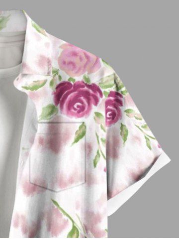 TENDANCE DU MOMENT> Chemise hawaïenne grande taille pour homme, à imprimé rose et feuilles, boutons et poche.