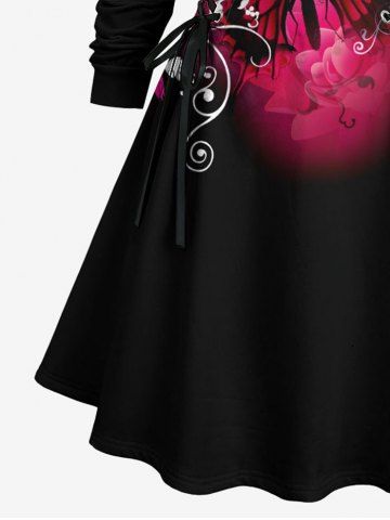 Robe à capuche grande taille à imprimé papillon et fleurs, lacée et à cordon - Noir - Noir